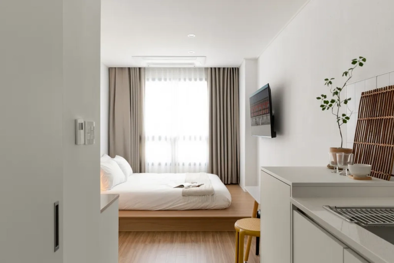 익선동 감성의 레지던스로 침대·세탁기·전자레인지 등 생활가전이 완비되어 있습니다. 관리비 무료, 카페거리 인접으로 생활이 편리합니다.