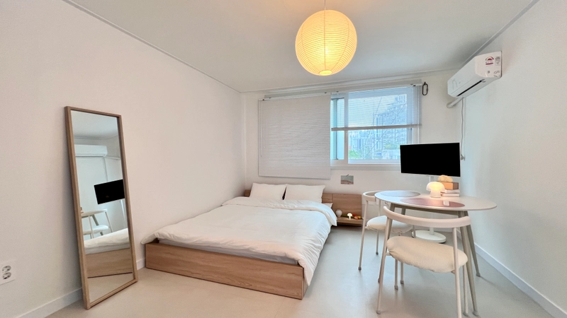 - 최근 리모델링한 첫 입주 방입니다 - 깨끗한 화이트&우드 톤의 편안하고 모던하게 스타일링한 인테리어 - 새 가구와 침구 및 최신 디자인 키친 & 화장실 인테리어를 갖춘 풀옵션 방 - 새 샤시로 소음 차단뿐 아니라 정면 막힘 없는 뷰로 답답하지 않는 깨끗한 하늘 뷰로 석양때 예쁨 - 새 가전 LG드럼세탁기 및 건조기, 삼성 비스포크 냉장고, 스마트TV