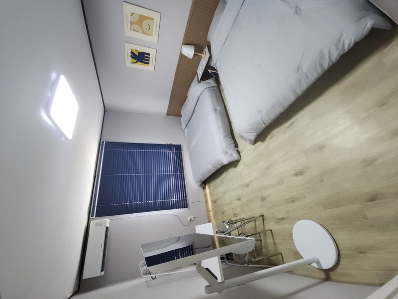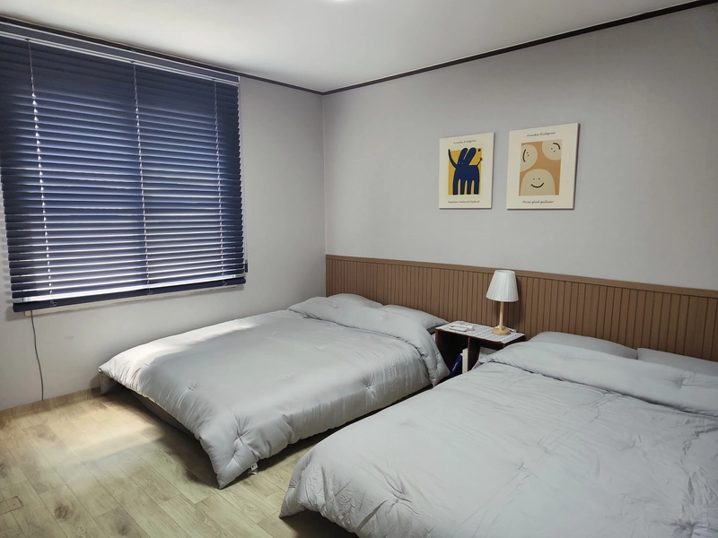 [★입실 퇴실 시간 자유★] - 안방 퀸사이즈 침대 2대, 작은방 퀸사이즈 침대 1대가 마련되어 있어 최대 6인까지 이용 가능하며, 생활에 필요한 기본 옵션이 갖춰져 있어 편리하게 지내실 수 있습니다. - 각 방마다 에어컨이 설치되어 있으며, 청결 관리에 최우선을 두어 깔끔하고 쾌적한 환경을 제공합니다. - 비대면 입주 진행(계약 확정 후 입실 당일 세대 비밀번호 안내)합니다. - 내부 비치된 물품은 기본 제공옵션이며, 퇴실시에 가져가실 수 없습니다. - 쾌적한 환경을 위해 실내 흡연 절대 금지이며, 반려 동물은 안됩니다. - 추가 예약시 일 단위 예약 가능하며 채팅 문의시 안내드리겠습니다 📍TV 냉장고 세탁기 전자레인지 전기포트 드라이기 에어컨 침대 각방의 행거와 테이블 등 풀옵션 📍기본 식기세트, 조리 도구류 구비되어 있음 📍스마트 TV 넷플릭스등 OTT서비스는 개인 로그인 후 이용 가능 📍해와 바람이 잘 들어오는 정남향이며 안전을 위해 현관 CCTV 설치된 안심 건물👍👍 📍전입신고 불가합니다. 📍수도 전기 과다 사용시 추가 비용 발생 될 수있으니, 외출시 냉 난방 전기 시설은 꼭 꺼주세요. 📍📍퇴실시 가져오신 음식및 쓰레기 정리 부탁드리며 오염 훼손시 배상 책임 있습니다🙏