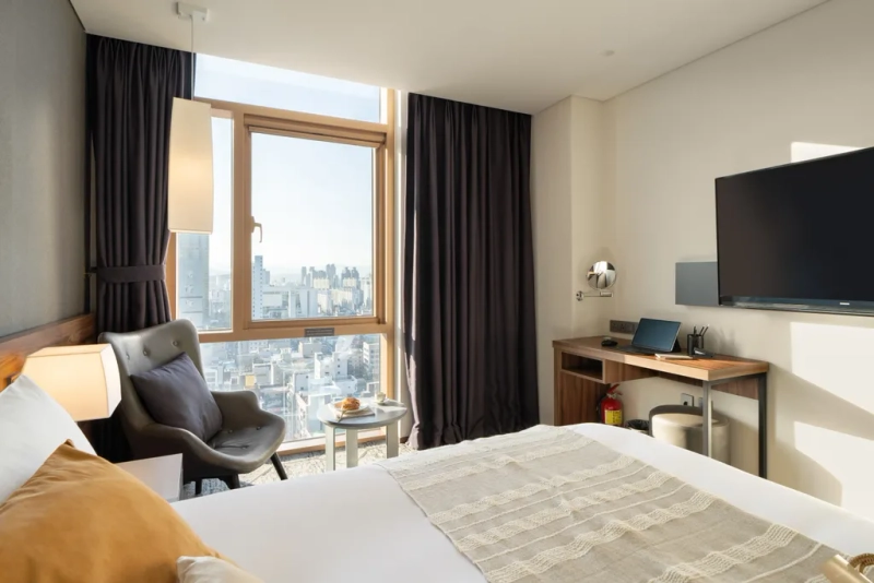 울산 삼산동 시내에 위치한 호텔로 1인이 머물기에 안성맞춤인 호실입니다.